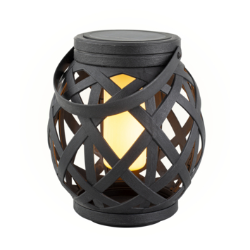 Deze zwarte gevlochten lantaarn geeft met zijn vorm je tuin een moderne uitstraling. Met het vlam-effect in de lantaarn is het meteen gezellig aan tafel in de donkere avonduurtjes.