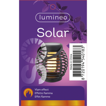Solar LED Lantaarn met vlam-effect, 16 cm hoog zwart