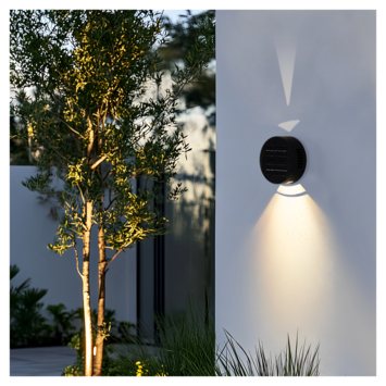 Wandlamp Murcia is een solar lamp in zwart. De wandlamp is geschikt als sfeer- of oriëntatieverlichting voor buiten. Het moderne uitlijk van de wandlamp zorgt er voor dat hij in iedere tuin past. Wandlamp Murcia is voorzien van top-down licht, de lamp verspreidt aan twee kanten licht op de muur. Aan de binnenzijde van de lamp zitten schuifpanelen waardoor de hoek van het licht zelf instelbaar is. De geïntegreerde lamp werkt op zonne-energie. Plaats wandlamp Murcia bij voorkeur op een zonnige plek, het aantal branduren is afhankelijk van het aantal uren dag- en zonlicht.