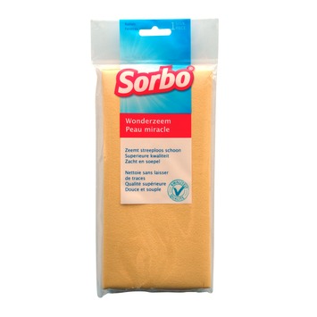 De Sorbo Wonderzeem 38x40 cm is ideaal voor het ramen zemen. De zeem is gemaakt van soepel materiaal en maakt streeploos schoon. De gele wonderzeem van Sorbo laat de ramen van je huis en je auto weer stralen.