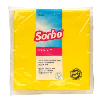 De Sorbo Sorbonettes zijn jouw trouwe schoonmaakhulp in huis. Het schoonmaakdoekje heeft een hoog absorptievermogen, pluist niet en gaat lang mee. Wasbaar tot 60 graden. Afmeting van 38 x 40 cm. In een verpakking van 5 stuks.