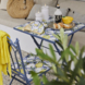 De combinatie van kleuren blauw en geel maken van mijn buiteninterieur een zomerjuweeltje. Iedereen die voor de eerste keer komt kijken is laaiend enthousiast en vraagt waar ik ze gekocht heb. Samen met het bistrotafeltje. Top!!! Je geraakt er onmiddellijk goed gezind van.