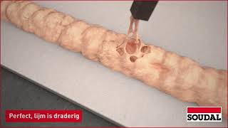 Soudal bouwlijm 600 ml is een sneldrogende polyurethaanlijm met een “Low Expansion” technologie. Ideaal voor vrijwel alle verlijming in de droogbouw. Verlijmen en afdichten van alle types isolatiemateriaal, rotswol, glaswol, cellulair glas, kurk etc. Verlijmen van panelen zoals gipskartonplaten, gipsvezelplaten, cementplaten, composietplaten etc. Rechtstreeks op een muur of op een houten raamwerk. Verlijmen van niet-dragende binnenmuren, zoals scheidingsmuren, blinderingsmuren, enz. uit constructiestenen (cellenbeton, kalkzandsteen, gips ...). Bevestigen van lichtgewicht decoratieve elementen op binnenmuren en gevels. Monteren inbouwdozen voor elektriciteit en afdichten van ramen en deuren.