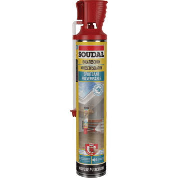 Spuitbaar isolatieschuim is een uniek purschuim dat gespoten kan worden op afstand door het speciale opzetstuk (enkel geschikt voor dit type purschuim). Hierdoor kunnen ondergronden die vaak lastig te isoleren zijn met standaard isolatiematerialen, zoals bijvoorbeeld een ondergrond met leidingen, buizen en balken in krappe ruimtes zoals op zolder of de kruipruimte, ook worden geïsoleerd. 1 Schuimbus kan tot 1 m² isolatie opbrengen (ca. 2 cm laag na uitharding). Door de rode Soudal Genius kop is de schuimbus gebruiksklaar en kun je het uitspuiten met 1 hand perfect doseren.