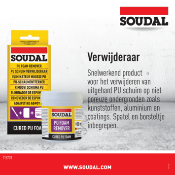Snelwerkende pasta voor het verwijderen van uitgehard PU schuim op niet poreuze ondergronden zoals kunststoffen, aluminium en coatings. Biologisch afbreekbaar en zonder geurhinder.