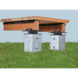 De Freelift van Spax is een erg handig hulpmiddel voor het maken van een vlonder met vlonderplanken en puntpaalhouders. Het werken met de Spax Freelift is erg eenvoudig. Om de 50 cm plaats je een puntpaalhouder van 9x9 cm in de grond waarop je de Freelift van Spax plaats. Met behulp van de Freelift kun je het oppervlak vervolgens maximaal 35 mm in hoogte verstellen om het terras waterpas te maken of juist voor enig afschot te zorgen.