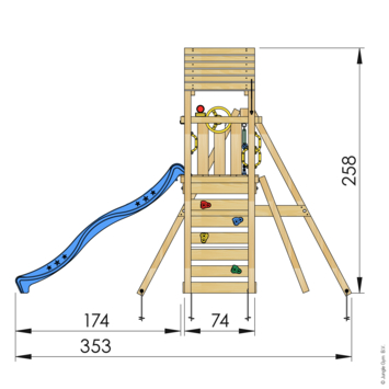 Jungle Gym speeltoestellen zijn zo ontworpen dat ze heel eenvoudig zelf te monteren zijn. Met zelftappende, gegalvaniseerde schroeven en bouten. Voor een perfecte pasvorm is het hout niet voorgeboord, want hout reageert van nature op temperatuur en vochtigheid. Inclusief stap-voor-stap geïllustreerde handleiding, afwerkdoppen, handige schroefbits en boortjes set.
