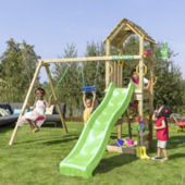 Jungle Gym speeltoestellen zijn zo ontworpen dat ze heel eenvoudig zelf te monteren zijn. Met zelftappende, gegalvaniseerde schroeven en bouten. Voor een perfecte pasvorm is het hout niet voorgeboord, want hout reageert van nature op temperatuur en vochtigheid. Inclusief stap-voor-stap geïllustreerde handleiding, afwerkdoppen, handige schroefbits en boortjes set.