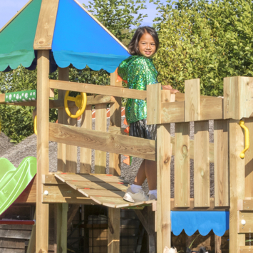 Dit speeltoestel is een ware speeltuin in de buitenlucht, compleet met een hangbrug, 2 schommelzitjes, een groot klimnet, een speelwinkeltje, een lange glijbaan, een zandbak, een klimwand met grote klimgrepen, een trapje, een telescoop en een stuur. Het is geschikt voor kinderen tussen de 3 en 10 jaar oud. Jungle Gym heeft deze speeltoestellen al 30 jaar ontworpen en geproduceerd in Nederland en staat bekend om hun topkwaliteit. Veiligheid is de hoogste prioriteit: alle producten worden uitvoerig getest en voldoen aan de laatste Europese veiligheidsnormen (EN 71). Bovendien zijn de speeltoestellen 100% compleet en worden ze geleverd inclusief alles wat je nodig hebt. De materialen zijn van hoge kwaliteit, weerbestendig, praktisch onderhoudsvrij en kindveilig zonder toxische stoffen of allergenen.
