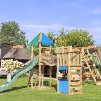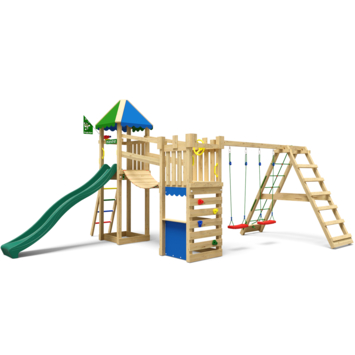 Speeltoestel Jungle Gym Explorer grenen geïmpregneerd met glijbaan donker groen en 2-klimrek module