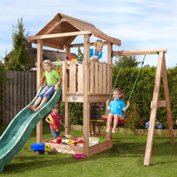 Dit fantastische speeltoestel is speciaal ontworpen voor peuters, kleuters en kinderen tot 10 jaar. Het komt met een schommel, lange glijbaan, zandbak, trapje, telescoop en stuur. Jungle Gym heeft al gedurende 30 jaar gepassioneerde ervaring in het ontwerpen en produceren van speeltoestellen en wordt befaamd om zijn topkwaliteit. Veiligheid is onze hoogste prioriteit: al onze producten worden uitbundig getest en voldoen aan de recentste Europese veiligheidsvoorschriften, EN 71. Verder zijn onze speeltoestellen volledig uitgerust en worden ze standaard geleverd met alles wat nodig is. De materialen zijn van uitstekende kwaliteit, weerbestendig en vragen maar weinig onderhoud. Ze zijn volkomen veilig voor kinderen, zonder enige giftige stoffen of allergenen.