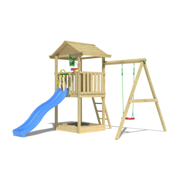 Jungle Gym speeltoestellen zijn zo ontworpen dat ze heel eenvoudig zelf te monteren zijn. Met zelftappende, gegalvaniseerde schroeven en bouten. Voor een perfecte pasvorm is het hout niet voorgeboord, want hout reageert van nature op temperatuur en vochtigheid. Inclusief stap-voor-stap geïllustreerde handleiding, afwerkdoppen, handige schroefbits en boortjes set.