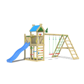 Laat jouw kinderen zorgeloos en veilig spelen met dit speeltoestel. Het toestel beschikt over twee schommelzitjes, een klimrek met groot net, een lange glijbaan, een zandbak, een klimwand met grote klimgrepen, een trapje, een telescoop en een stuur. Geschikt voor kinderen van 3 tot 10 jaar. De speeltoestellen van Jungle Gym worden al 30 jaar ontworpen en geproduceerd in Nederland en staan bekend om de topkwaliteit. Veiligheid staat altijd voorop, alle producten worden uitgebreid getest en voldoen aan de meest actuele Europese veiligheidsvoorschriften EN 71. Het speeltoestel is volledig compleet geleverd met alles wat je nodig hebt. De materialen zijn van hoge kwaliteit, weerbestendig, praktisch onderhoudsvrij en bevatten geen toxische stoffen of allergenen die schadelijk zijn voor kinderen. Kortom, met dit speeltoestel kunnen jouw kinderen zorgeloos genieten van plezier en avontuur.