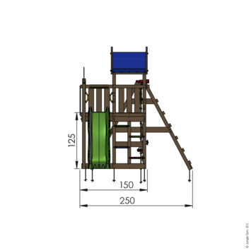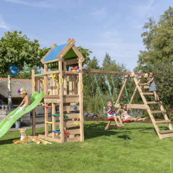 Speeltoestel Jungle Gym Nomad met groene glijbaan en klimrek van douglashout
