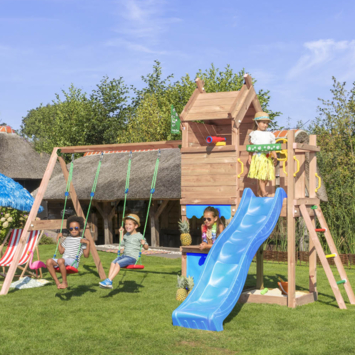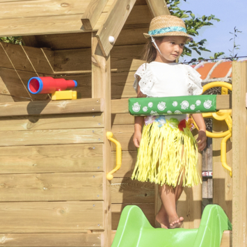 Het speeltoestel van Jungle Gym biedt kinderen tussen de 3 en 10 jaar de mogelijkheid om urenlang plezier te hebben in de tuin. Het toestel beschikt over 2 schommelzitjes, een speelwinkeltje, een lange glijbaan, een zandbak, een klimwand met grote klimgrepen, een trapje, een telescoop en een stuur. Jungle Gym speeltoestellen worden al 30 jaar geproduceerd in Nederland en staan bekend om hun topkwaliteit. Veiligheid is een prioriteit en alle producten worden uitvoerig getest en voldoen aan de meest recente Europese veiligheidsvoorschriften EN 71. Het toestel is compleet en wordt geleverd met alle benodigde materialen van hoge kwaliteit die weerbestendig en makkelijk te onderhouden zijn. Bovendien zijn ze kindveilig en vrij van toxische stoffen en allergenen.