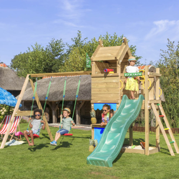 Speeltoestel Jungle Gym Resort grenen geïmpregneerd met glijbaan donker groen en 2-schommel module