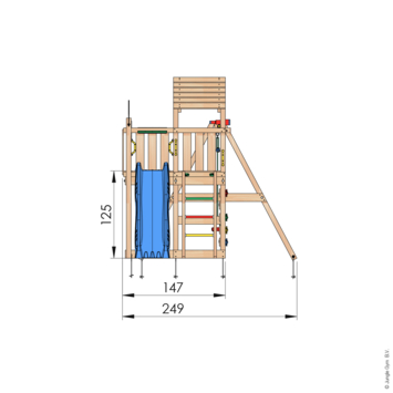 Dit speeltoestel staat garant voor ultiem speelplezier voor kinderen tussen 3 en 10 jaar oud. Het toestel omvat twee schommelzitjes, een lange glijbaan, zandbak, klimwand met grote klimgrepen, trapje, telescoop en stuur. De Jungle Gym speeltoestellen worden volledig ontworpen en geproduceerd in Nederland en genieten al meer dan 30 jaar een onberispelijke reputatie op vlak van topkwaliteit. De veiligheid van de kindjes is hierbij steeds de hoogste prioriteit, daarom ondergaan alle producten uitgebreide tests om aan de meest recente Europese veiligheidsnormen EN71 te voldoen. De producten worden 100% compleet geleverd en bevatten alles wat je nodig hebt. De gebruikte materialen zijn van hoge kwaliteit, weerbestendig, onderhoudsvrij en bevatten geen toxische stoffen of allergenen die schadelijk kunnen zijn voor kinderen. Het concept werd tot in elk detail doordacht, zodat kinderen op een veilige manier ten volle kunnen genieten van hun speeltijd.