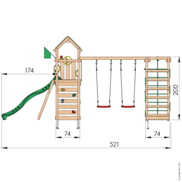 Dit geweldige speeltoestel is een droom voor elk kind. Het beschikt over twee schommelzitjes, een klimrek met een groot klimnet, een lange glijbaan, een zandbak, een klimwand met grote klimgrepen, een trapje, een telescoop en een stuur en is geschikt voor kinderen van 3 tot 10 jaar. Jungle Gym, een Nederlandse fabrikant, ontwerpt en produceert deze speeltoestellen al 30 jaar en ze staan bekend om hun uitstekende kwaliteit. Veiligheid staat altijd voorop en daarom worden alle producten uitvoerig getest om te voldoen aan de meest recente Europese veiligheidsvoorschriften EN 71. De speeltoestellen zijn 100% compleet en bevatten alle benodigdheden. De gebruikte materialen zijn van hoge kwaliteit, weerbestendig en praktisch onderhoudsvrij. Ook zijn ze veilig voor kinderen omdat ze niet giftig zijn en geen allergenen bevatten.