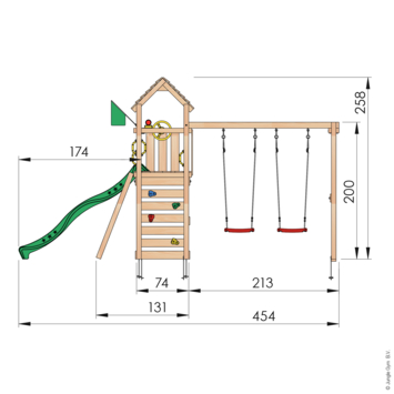 Speeltoestel Jungle Gym Safari douglas met glijbaan donker groen en 2-schommel module
