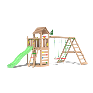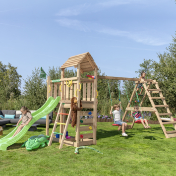 Dit speeltoestel is de droom van elk kind en beschikt over 2 schommelzitjes, een groot klimnet, een lange glijbaan, een zandbak, een klimwand met grote klimgrepen, een trapje, een telescoop en een stuur. Het is perfect geschikt voor kinderen tussen 3 en 10 jaar oud. Jungle Gym is al 30 jaar lang een gerenommeerd Nederlands merk dat bekend staat om zijn hoogwaardige speeltoestellen. Veiligheid is bij Jungle Gym altijd de hoogste prioriteit, aangezien al onze producten uitvoerig worden getest en voldoen aan de meest recente Europese veiligheidsvoorschriften (EN 71). Onze speeltoestellen worden ook geleverd als een 100% complete set, met alles wat je nodig hebt inbegrepen. Onze materialen zijn van topkwaliteit, weerbestendig, vrijwel onderhoudsvrij en volledig veilig voor kinderen, zonder toxische stoffen of allergenen.
