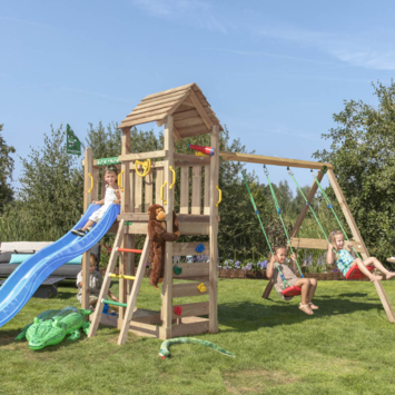 Dit speeltoestel heeft alles in zich om kinderen tussen 3 en 10 jaar het ultieme speelplezier te bezorgen. Met twee schommelzitjes, een lange glijbaan, een zandbak, een klimwand met grote klimgrepen, een trapje, een telescoop en een stuur is er genoeg variatie om de fantasie van kinderen te prikkelen. Al 30 jaar worden Jungle Gym speeltoestellen in Nederland ontworpen en geproduceerd met oog voor topkwaliteit. Veiligheid is altijd een prioriteit geweest voor Jungle Gym en daarom voldoen alle producten aan de meest recente Europese veiligheidsvoorschriften EN 71. Het speeltoestel wordt bovendien 100% compleet geleverd inclusief alle onderdelen en accessoires. De gebruikte materialen zijn van hoogwaardige kwaliteit, weerbestendig, praktisch in onderhoud en 100% veilig voor kinderen vanwege het ontbreken van toxische stoffen en allergenen. Met Jungle Gym speeltoestellen kunnen kinderen eindeloos plezier beleven in een veilige en gezonde omgeving.