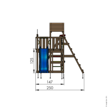 Speeltoestel Jungle Gym Safari met blauwe glijbaan en klimrek van grenenhout