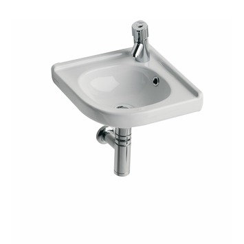 Deze Sphinx Hoekfontein 300 Basic Wit Keramiek 46.7x40.5x15 cm is een compacte hoekfontein met het kraangat in de hoek geplaatst. De wastafel zelf is gemaakt van hoogwaardig keramiek ne beschikt over een overloopbeveiliging. De overloopbeveiliging zorgt ervoor dat het water nooit over de rand komt als de kraan te lang open blijft staan.