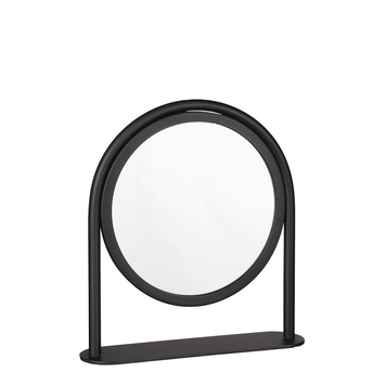 Om gewoon even te kijken of je haar goed zit of voor het aanbrengen van make-up mag een goede spiegel niet ontbreken. Mica Decorations heeft daarvoor deze prachtige ijzeren ronde spiegel met een zwart industrieel contour ontworpen die past bij elk interieur. Hij heeft een handig klein formaat van 24 cm lang, 6 cm breed en 26,5 cm hoog en past op elke gewenste plek. De spiegel is bevestigd aan een standaard op brede voet voor een uitermate goede stabiliteit. Hij is simplistisch, stijlvol en mag eigenlijk niet ontbreken..