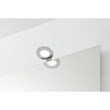 Wil je een lamp met ronde vormen boven je wasbak hangen? Ga dan voor spiegelverlichting Cursa 41 LED. De lamp is 10cm breed en dankzij de IP44 beschermingsklasse spatwaterdicht, dus uitstekend geschikt om boven je badkamerspiegel te hangen. De behuizing is van kunststof, een licht en vooral vochtwerend materiaal. Dankzij de chromen finish en ronde vorm krijgt de lamp een speelse en moderne look. De lamp is voorzien van geïntegreerde LED-verlichting en is bovendien dimbaar, zodat je zelf beslist hoe licht het in je badkamer is. Kortom: een goede lamp die past in iedere moderne badkamer.