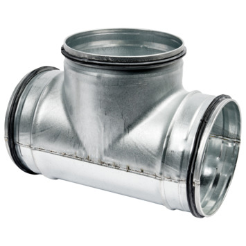Spiraalbuis 90° T-stuk Ø125mm ten behoeve van gegalvaniseerde buis. Deze gegalvaniseerde koppelstukken hebben een rubber flens voor luchtdichtheidsklasse D volgens norm EN12237. De koppelstukken zijn waar mogelijk gestanst.