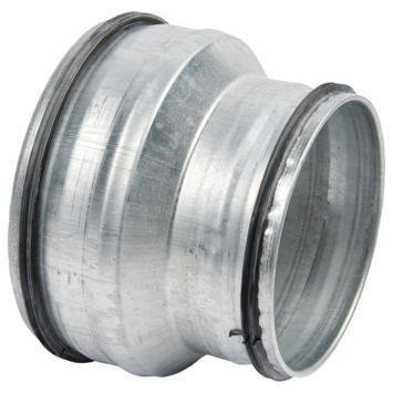 Spiraalbuis Verloopstuk van 100mm naar 125mm. De verloopstukken worden gebruikt om twee spiraalbuizen met een andere maat aan te sluiten op elkaar. Dit koppelstuk voldoet door de rubber flens aan de luchtdichtheidsklasse D kwaliteit volgens de norm EN12237.