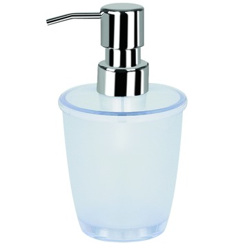 Handen wassen wordt nog makkelijker met de Spirella Toronto zeepdispenser clear/wit. Deze witte zeepdispenser kan in zowel de douche als in het toilet worden gebruikt. Pomp met een simpele handbeweging de zeep naar buiten en was in een mum van tijd uw handen. Hygiënisch en doeltreffend. Door het moderne design van de zeepdispenser past deze in iedere sanitairinrichting, of dat nu een toilet of badkamer betreft. De kunststof zeepdispenser is uitgevoerd in een fraaie witte kleur. Geef uw badkamer of wc een luxe uitstraling met de Spirella Toronto zeepdispenser clear/wit.
