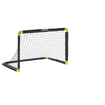 SportX voetbaldoel 90x59x61 cm, met een superhandig vouwsysteem. Op de hoekpunten van deze goal zit namelijk een scharnier. De goal wordt volledig gemonteerd geleverd: simpelweg uitklappen, zekeren in de grond met de 4 bijgeleverde haringen, en je bent klaar voor een potje voetbal! Afmeting: 90 x 59 x 61 cm. Geschikt voor kinderen vanaf 5 jaar.