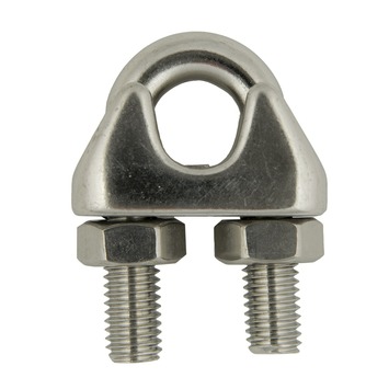 De staaldraadklem 12 mm is een enkele staaldraadklem geschikt voor een staaldraad met een diameter van 12 millimeter. De klem is gemaakt van het hoogwaardige roestvrijstaal 316 en is daardoor goed bestand tegen zowel zoet als zout water. De staaldraadklem wordt gebruikt voor het maken en vastzetten van een lus in een staaldraadkabel. Geadviseerd wordt om twee enkele staaldraadklemmen te gebruiken per lus.