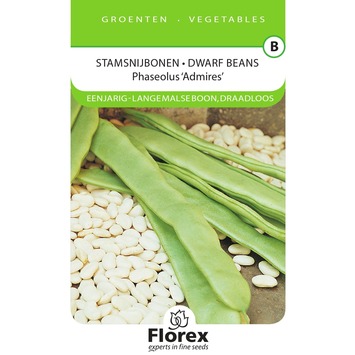Stamsnijbonen (Phaseolus, Admires) Lange malse boon, draadloos. Zeer gezond en productief ras. De Stamsnijbonen Zaadjes bloeien in Mei, Juni, Juli. Dit is een Eenjarig plant Deze zaadjes kunnen gepland worden in Mei, Juni, Juli en ontkiemen in dagen.