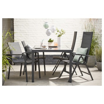 De stoel Livorno heeft een aluminium frame en een zitting van textileen. De Standenstoel Livorno Antraciet Aluminium is hierdoor onderhoudsvriendelijk, weerbestendig en licht van gewicht. De buitenstoel heeft 4 verschillende standen en is inklapbaar. Uit de Livorno serie zijn bijpassende stapelstoelen verkrijgbaar, zodat je tuinset er als een geheel uitziet. Kortom, deze stapelstoel Livorno is een stijlvolle toevoeging aan jouw tuin.