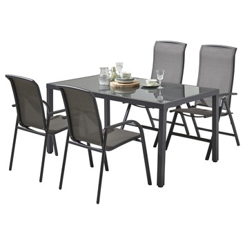 Ben jij op zoek naar een standenstoel voor in je tuin? Ga dan voor standenstoel Toledo. Het frame van de stoel is gemaakt van aluminium, een sterk materiaal dat licht van gewicht, makkelijk schoon te maken én corrosiebestendig is. Daarnaast bestaat de zitting van de stoel uit textileen, een kunststof dat bestaat uit polyester en nylon en weerbestendig, kleurvast en zeer sterk is. De stoel is geheel naar eigen wens in 7 verschillende standen te stellen en dankzij de inklapbegeleiding makkelijk op te bergen. In de serie Toledo zijn bijpassende relaxstoelen, stapelstoelen, ligbedden en tafels verkrijgbaar, zodat je tuinset er als een geheel uitziet. Kortom, deze Standenstoel Toledo Antraciet Aluminium is een stijlvolle toevoeging aan jouw tuin.