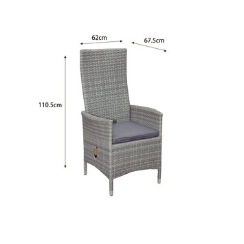 Het tuinmeubel is 110,5 centimeter hoog, 62 centimeter breed en 67,5 centimeter diep.