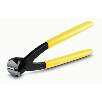 Met de kunststoffen Stanley Betonvlechttang (2-84-208) kunt u gemakkelijk draad doorsnijden of wapeningsstaal bevestigen bij het installeren van bekisting. Deze betonvlechttang is gemaakt van hooggelegeerd staal en heeft inductiegeharde snijranden. De blank afgewerkte vlakken van de klemmen zijn chemisch zwart gelakt en het handvat heeft een geel kunststof omhulsel ter bescherming. De tang voldoet aan ISO- en DIN-veiligheidsnormen en is 250mm breed.