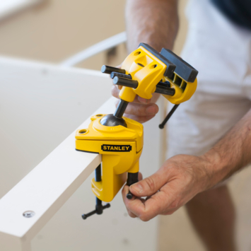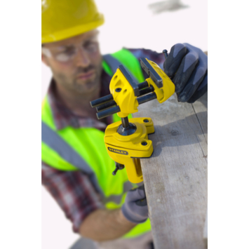 De Stanley boorklem (1-83-069) kunt u gebruiken voor diverse boorklussen. De boorklem heeft een vergrendelbaar kniegewricht en is hierdoor maar liefst 360° te draaien. Dankzij de constructie van gegoten aluminium is de bankschroef niet alleen erg sterk, maar ook licht en dus gemakkelijk te verplaatsen. De basis van de boorklem kunt u op de werkbank bevestigen voor extra stabiliteit. Om de boorklem nog wendbaarder te maken kunt u de beschermkappen verwijderen. De boorklem heeft een klemcapaciteit van 80mm en klemdiepte van 40mm.