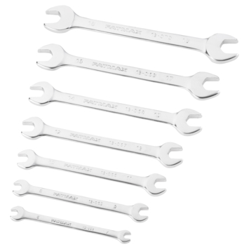 STANLEY FatMax 7-delige steeksleutelset FMMT82901-0 is een metrische set, deze bevat de meest gangbare steeksleutels: 6×7, 8×9, 10×11, 12×13, 14×15, 16×17 en 18×19mm. De steeksleutels zijn volledig gemaakt van chroom-vanadiumstaal volgens de normen ISO 3318 en DIN 3113, wat een lange levensduur en nauwkeurigheid garandeert. Iedere sleutel is aan beide zijden voorzien van antislip bekken die in een hoek van 15° staan voor een optimale grip. Het slanke ontwerp van de steeksleutels zorgt voor een vlot en eenvoudig gebruik, zodat je elke bout en moer in en rond het huis makkelijk en snel kunt los- en vastdraaien. Afwerking: mat chroom.