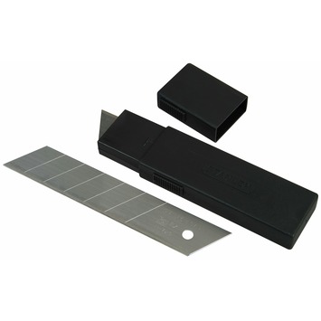 De Stanley FatMax reserve afbreekmesjes 25mm (2-11-725) hebben een gepatenteerde inductie en geharde rand en gaan 25% langer mee dan andere mesjes. De mesjes zijn geschikt voor diverse, zwaardere snijwerkzaamheden en ideaal voor gebruik in situaties waarbij resten aan het blad blijven kleven. Het afbreekblad biedt constant scherpe randen, maar is ook sterk genoeg om zware druk uit te oefenen zonder te breken. Deze reservemesjes zijn 25mm breed en worden per 10 stuks verkocht.