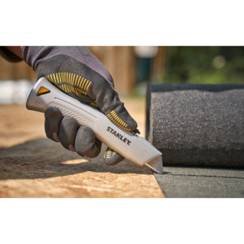 De STANLEY FatMax Pro uitschuifmes FMHT10505-0 is een sterk en professioneel snijgereedschap voor zwaarder werk. Het gegoten aluminium ontwerp heeft een gemagnetiseerde ruimte voor het opbergen van 10 extra mesjes. Met een handige schuifknop open je de behuizing eenvoudig om een nieuwe mes te plaatsen. Het mes ligt fijn in de hand en wordt geleverd met drie extra mesjes. Het biedt een goede prijs-/kwaliteitverhouding.