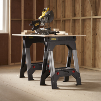 Maak kennis met de Stanley FatMax schragenset – de perfecte oplossing voor bijv. zaag- en verfklussen. Deze schragen bieden zeer goede stabiliteit en zijn perfect voor het zware werk. Dankzij de stevige metalen poten kunnen deze schragen belast worden tot maar liefst 1.350 Kg per set. De afzonderlijk verstelbare voetstukken maken het mogelijk om ze ook op een ongelijke ondergrond te gebruiken, zodat u altijd veilig en efficiënt kunt werken. De antislipkussens op het blad en de poten zorgen voor een stabiele werkruimte, waardoor u zonder zorgen aan de slag kunt. Daarnaast zijn deze schragen voorzien van een handige V-groef, ideaal voor het ondersteunen van pijpen. Het slimme design maakt het opbergen van de schragen eenvoudig en snel.