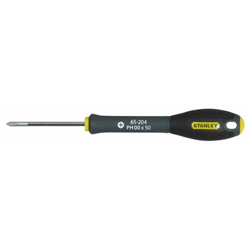 De Stanley FatMax schroevendraaier kruiskop PH00x50 mm is een luxe uitgevoerde schroevendraaier met een zogenaamde Phillips kruiskop (PH). Deze kruiskopschroevendraaier PH00 is 50 millimeter lang en voorzien van een comfortabele handgreep met extra grip. De handgreep is aan het ronde uiteinde voorzien van een handige kleurcodering, in dit geval geel, dat verwijst naar een type schroevendraaier, zodat je in de gereedschapskist snel de juiste type schroevendraaier kunt vinden.