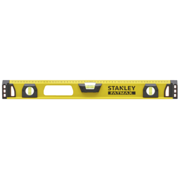 De Stanley FatMax waterpas I-Beam (1-43-553) is 600mm lang en heeft een ingebouwd handvat. Daardoor plaatst en verplaatst u hem heel gemakkelijk. De bovenkant van deze waterpas is een liniaal in centimeters. De waterpas heeft een nauwkeurigheid van een halve mm per meter en de twee verticale libellen en grote, horizontale middenlibel zijn van beide kanten goed leesbaar. De uiteinden zijn schokabsorberend.