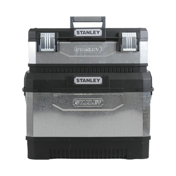 De gereedschapswagen is gemaakt van metaal en kunststof en heeft twee grote vakken. Zo kan je eenvoudig al je gereedschap meenemen. Het onderste gedeelte van de gereedschapskar is een ruime, uitschuifbare bak die geschikt is voor grote gereedschappen zoals boormachines. De afneembare gereedschapskoffer heeft een uitneembare gereedschapsbak en de deksel is antislip. Zo kan je ook je wat kleinere gereedschap en onderdelen zoals spijkers en schroeven veilig en georganiseerd meenemen. De gereedschapskoffer kan eenvoudig met een kliksysteem op de kar worden bevestigd. De koffer is ook te vergrendelen met een hangslot, zodat je gereedschap veilig is. De gereedschapswagen heeft een telescopische handreep en grote wielen zodat je de gereedschapskar eenvoudig kan meenemen naar je klus. Kortom, met de Stanley Gereedschapswagen Contractor kan je veilig en eenvoudig al je gereedschap meenemen.