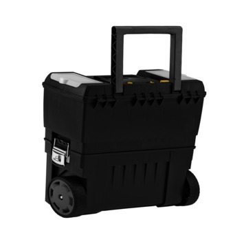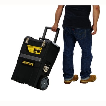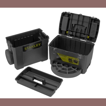 De Stanley Rolling workshop 2 in 1 is een praktische gereedschapswagen die uw klusgemak vergroot. De gereedschapwagen is van alle gemakken voorzien. Hij is uitgerust met 2 opberg compartimenten waarbij de extra grote gereedschapskist veel opbergruimte biedt. Daarnaast kunt u kleinere materialen zoals spijkers, schroeven en bouten eenvoudig en overzichtelijk opbergen dankzij de twee transparante deksels en lade in het midden. Dankzij de zware, vernikkelde metaalklinken blijft de koffer stevig gesloten gedurende transport. De grote wielen maken het mogelijk om de wagen gelijkmatig en eenvoudig te vervoeren, ook op ruwe ondergronden. En dankzij de nieuwe, inklapbare handgreep kunt u de koffer comfortabel vervoeren en opbergen. Wilt u uw gereedschap extra veilig opbergen? Gebruik dan een hangslot.