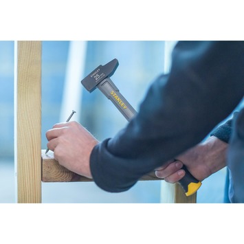 De Stanley bankhamer STHT0-54129 200g is super stevig dankzij de steel die gemaakt is van grafiet en bedekt met een beschermend polycarbonaat omhulsel. De handgreep is ergonomisch gevormd en vraagt daarom minder krachtinspanning en voorkomt spierletsel. Hij is gemaakt van zacht elastomeer, comfortabel en slipwerend, zelfs met natte handen. De koprand van de hamer is getemperd wat de levensduur en veiligheid ten goede komt. De platte kop met afgeschuinde hoeken geeft stevigheid en voorkomt beschadiging. Kop en handgreep van de Stanley bankhamer STHT0-54129 zijn op een dusdanige manier verbonden dat er een veilige, onbreekbare verbinding is ontstaan. De hamerkop weegt 200gram en meet 19mm.