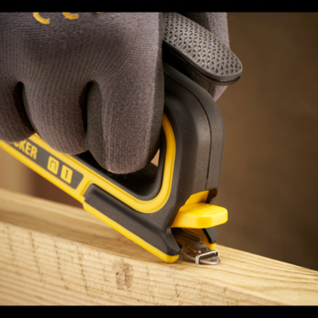 De STANLEY handtacker type STHT70440-0 is een lichte en compacte tacker. Dankzij het Easy-Squeeze mechanisme kun je langdurig werken zonder vermoeide handen te krijgen. Geschikt voor nagels type J (10 mm) en nieten type A (6, 8 en 10 mm). Deze tacker is zeer eenvoudig en snel te laden. Door de ergonomische handgreep, het lichte gewicht en de hoge belastbaarheid is hij perfect voor veelvuldig gebruik. Zeer goede prijs-/kwaliteitverhouding.